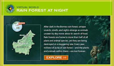 Explora a floresta tropical na ilha do Bornéu, no sudeste asiático, nesta aplicação interactiva do sítio da famosa revista norte americana National Geographic.